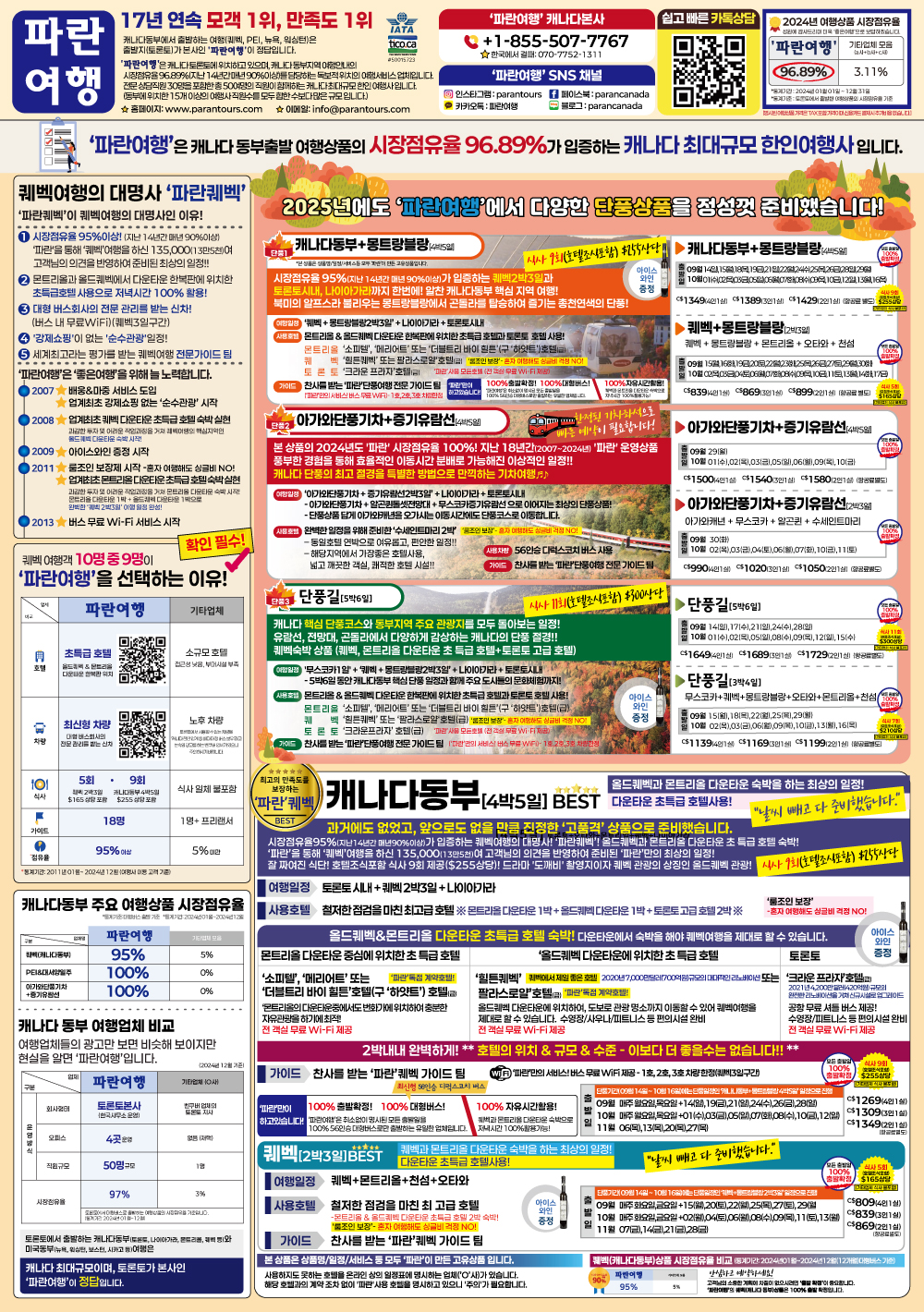 캐나다동부출발 여행상품의 시장점유율 95%가 입증하는 캐나다 최대규모 한인여행사 '파란여행'