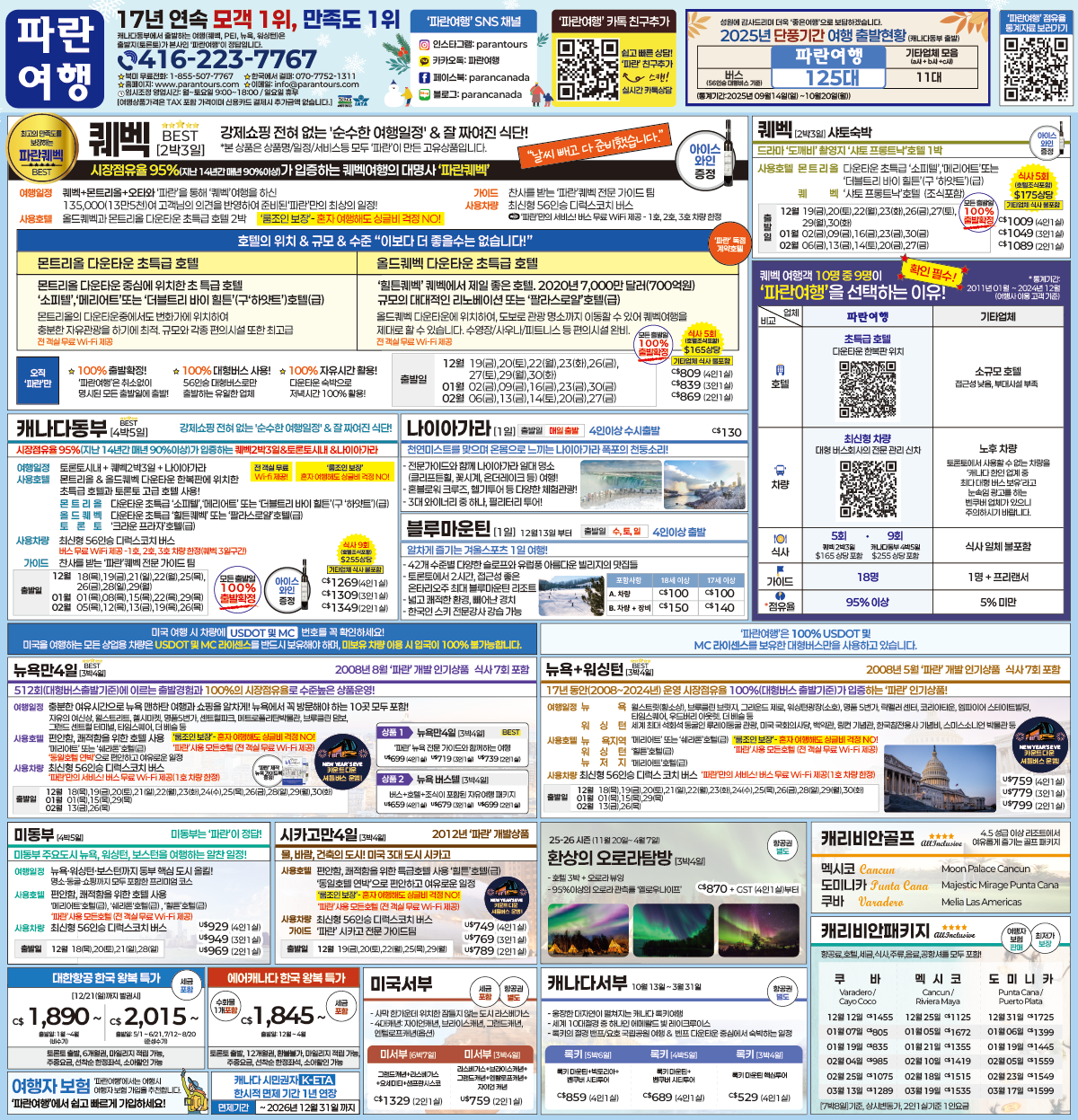 캐나다동부출발 여행상품의 시장점유율 95%가 입증하는 캐나다 최대규모 한인여행사 '파란여행'